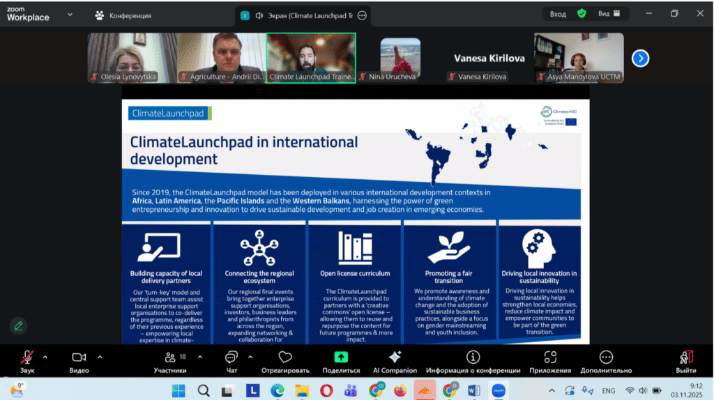 Захід проходить з 3 по 5 листопада 2025 року та об’єднує молодих науковців, студентів і викладачів, зацікавлених у розвитку підприємництва та кліматичних технологій.