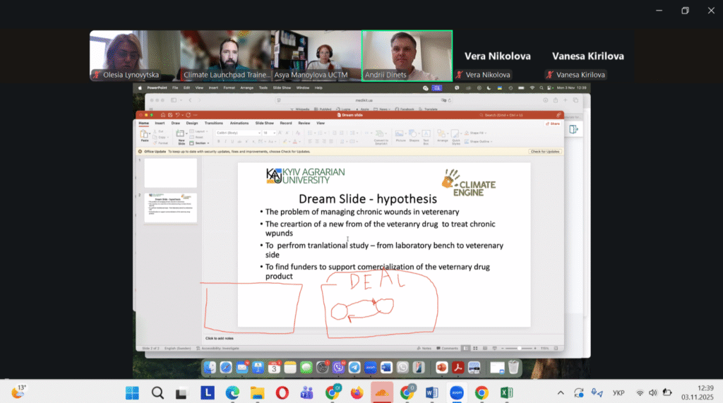 На базі Київського аграрного університету НААН у рамках реалізації проєкту Climate Engine розпочався триденний тренінг, присвячений розвитку стартапів — від формування ідеї до пошуку інвесторів та виходу на ринок.