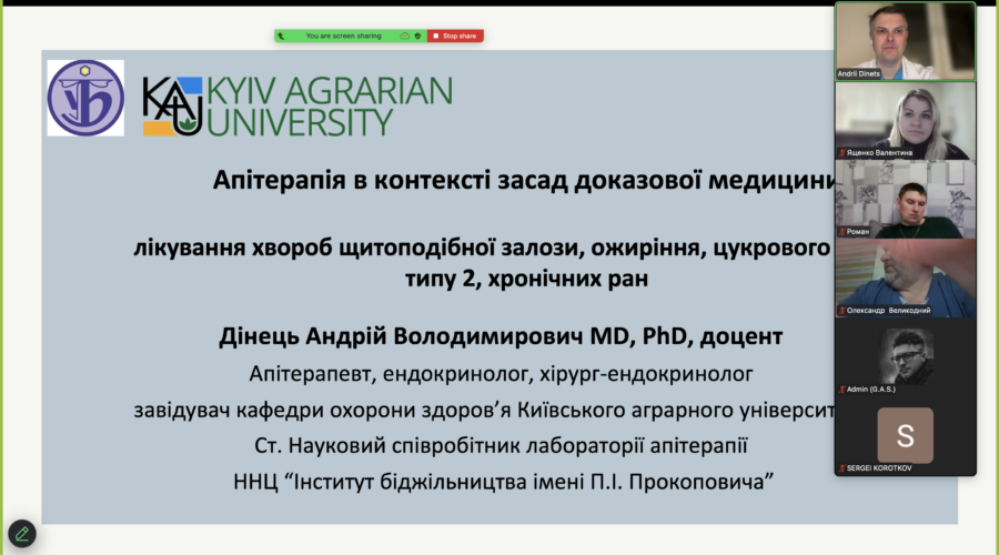 На базі ДНЗ «Гадяцьке аграрне училище» в січні 2025р. проведений 6 денний курс підвищення кваліфікації бджолярів та апітерапевтів за темою «Апітерапія». Кафедра охорони здоров’ Київського аграрного університету у співпраці з лабораторією апітерапії ННЦ «Інститут бджільництва імені П.І. Прокоповича» проведено семінар на зазначеному курсі за темою «Апітерапія: роль в лікування хвороб щитоподібної залози, ожиріння, цукрового діабету, хронічних ран», яку провів завідувач кафедри, Андрій Дінець PhD. Під час лекції розглянуті сучасні засади...Read More